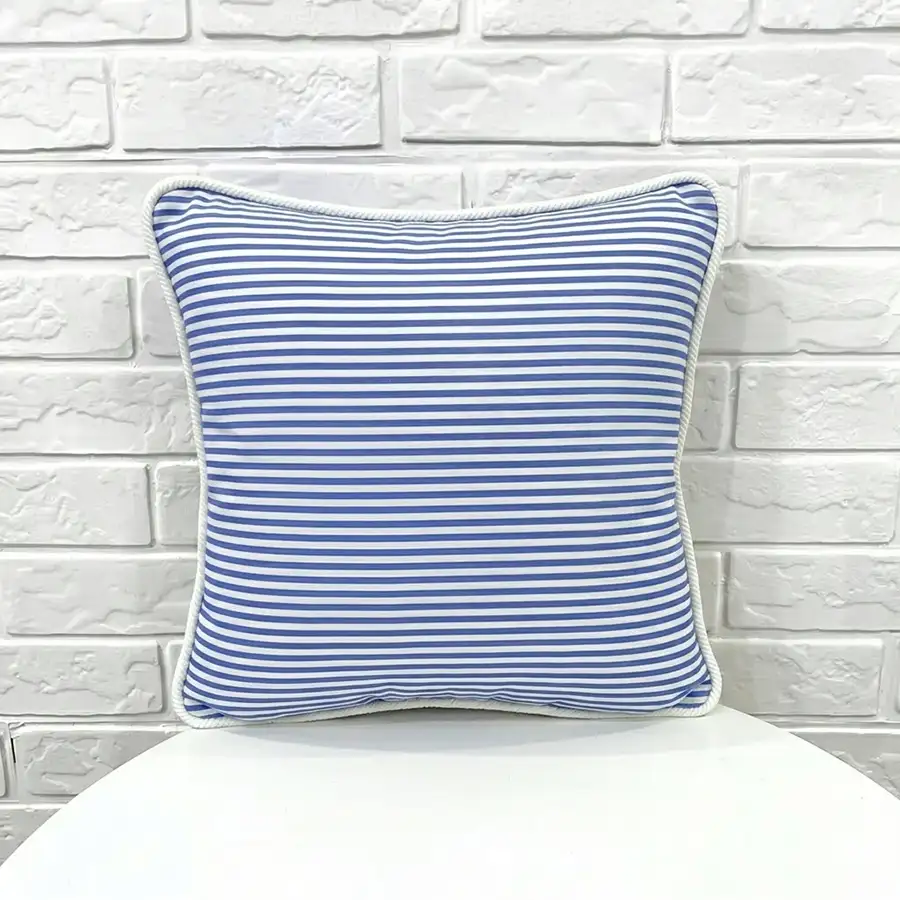 Almofadinha Listrada Azul e Branco 25×25 cm
