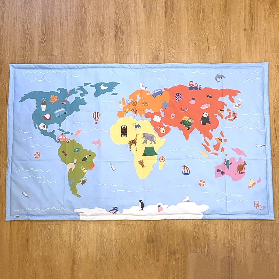 Este tapete é ainda mais espaçoso para muitas brincadeiras! Impermeável, portátil e super útil! A estampa do mapa é ótima para alegrar o seu ambiente e os seus passeios. E a sua criança vai aprender sobre o mundo brincando!