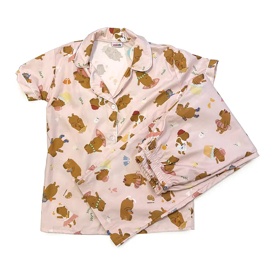 Pijama Americano Calça e Manga Curta Capivaras Fofas