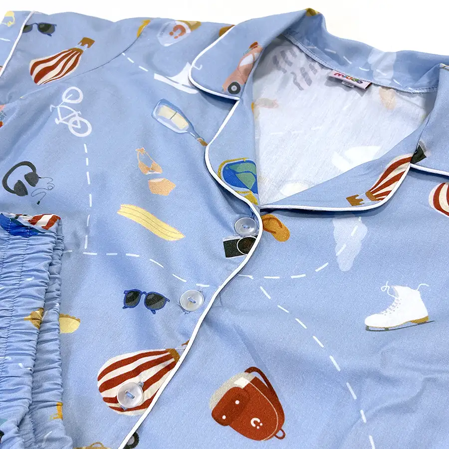 Nada como um pijama infantil confortável e 100% algodão para boas noites de sono com muito charme! Sua criança vai adorar o Pijama Americano Curto Viagem. Fique tranquilo que nossas costureiras confeccionarão seu pijama com carinho.
