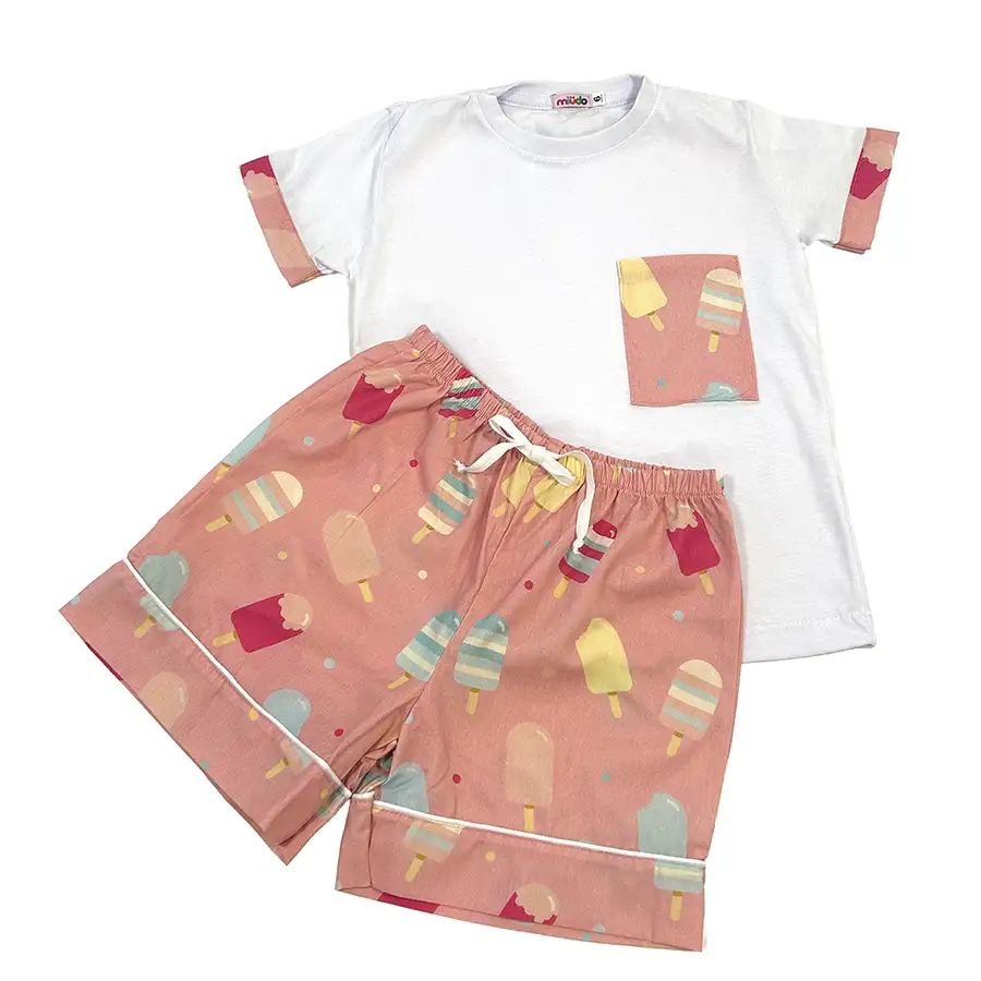 Pijama Curto Camiseta Picolés Rosa